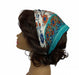 90-23 Polyester | Silky Pleated Scarves | w/ flower bouquet & border-Turquoise