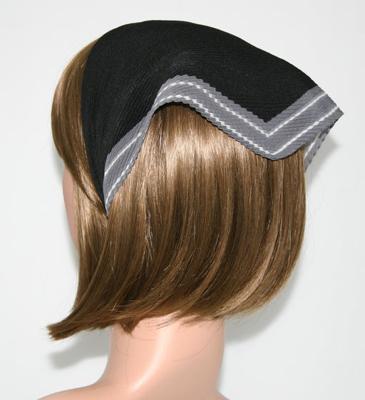 118-98 Pleated Italian | Solid Black with Grey Multi-Striped Border