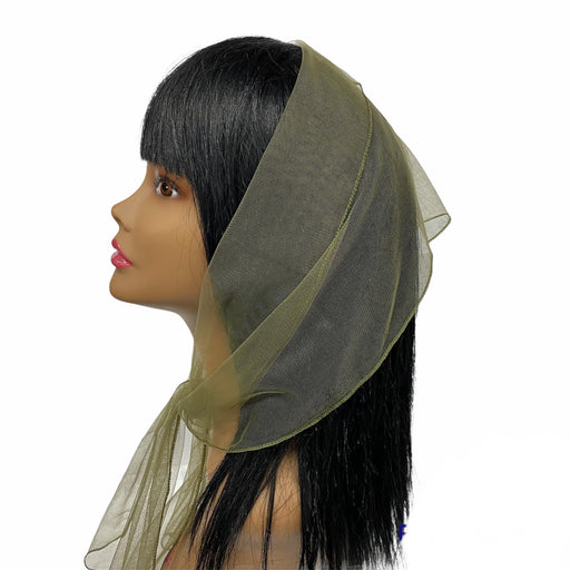 Long (M) Solid Soft Net Scarf ≈9”x50”-Olive Green